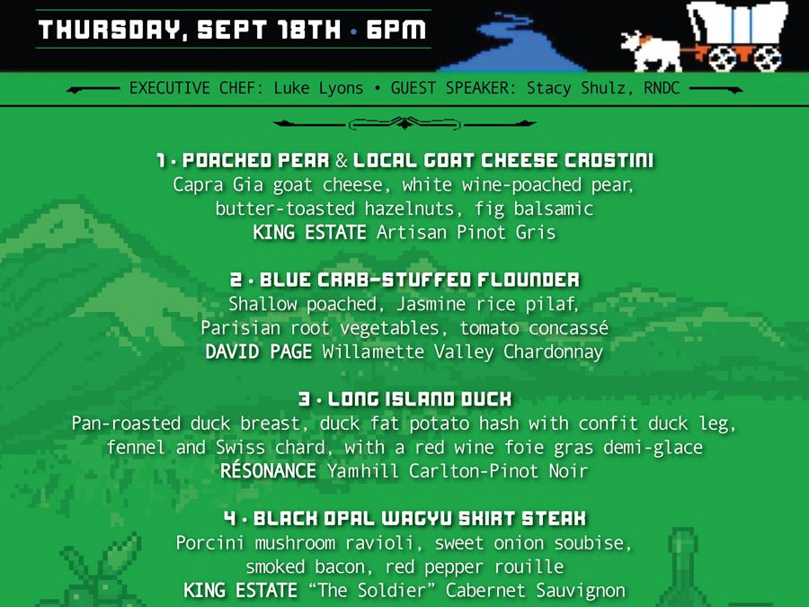 Join us for an unforgettable evening at Frankie Bones Bluffton! Experience a five-course dining adventure inspired by the Oregon Trail, expertly paired with renowned wines from King Estate, David Page, Résonance, and Chehalem. Each dish is thoughtfully created by Executive Chef Luke Lyons, featuring locally sourced ingredients and bold flavors designed to perfectly complement each vintage. Guest speaker Stacy Shulz, RNDC will guide you through the evening, sharing insights into the artistry and heritage of these celebrated wines.
